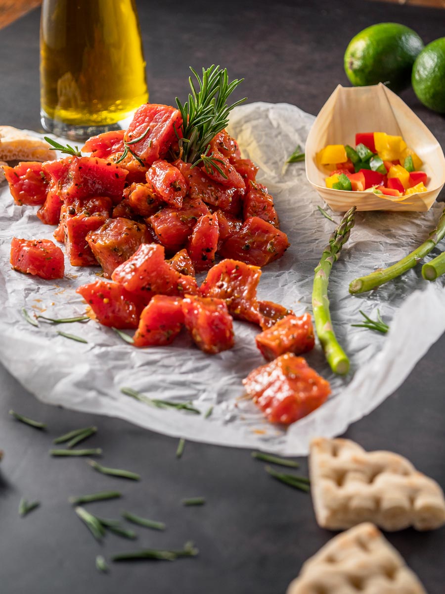 Αγαπημένο πιάτο των καλοφαγάδων, που σπάνια λείπει απ’ το τραπέζι. Ζουμερή τηγανιά από διαλεχτά κομμάτια μόσχου δικής μας παραγωγής, με κέδρο, δεντρολίβανο, σχοινόπρασο και αρωματικά καρυκεύματα.