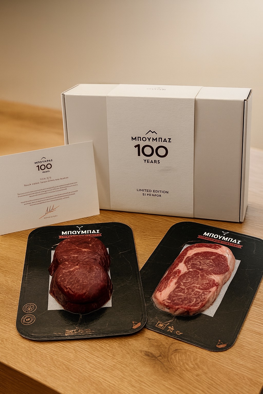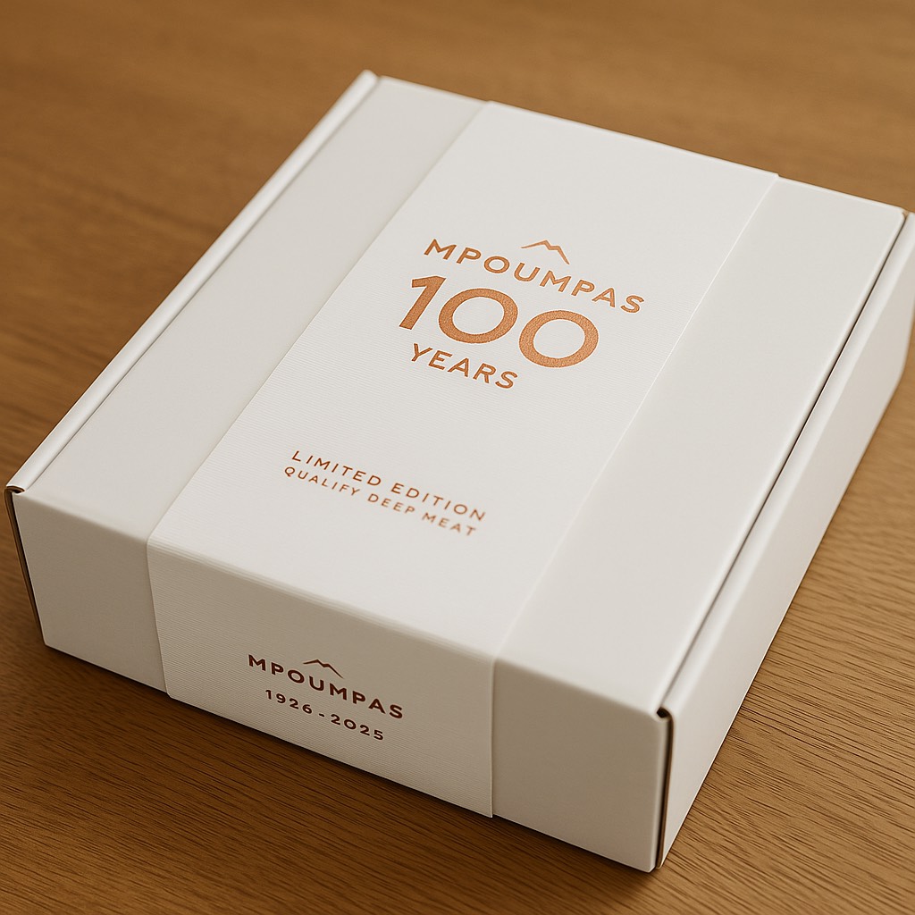 Με αφορμή τα 100 χρόνια Μπούμπας δημιουργήσαμε με μια συλλεκτική, επετειακή συσκευασία για όσους θέλουν να προσφέρουν ένα πραγματικά premium δώρο. Στη συσκευασία περιλαμβάνονται δύο μοναδικές κοπές κορυφαίας ποιότητας, ιδανικές για εντυπωσιακά γιορτινά τραπέζια: