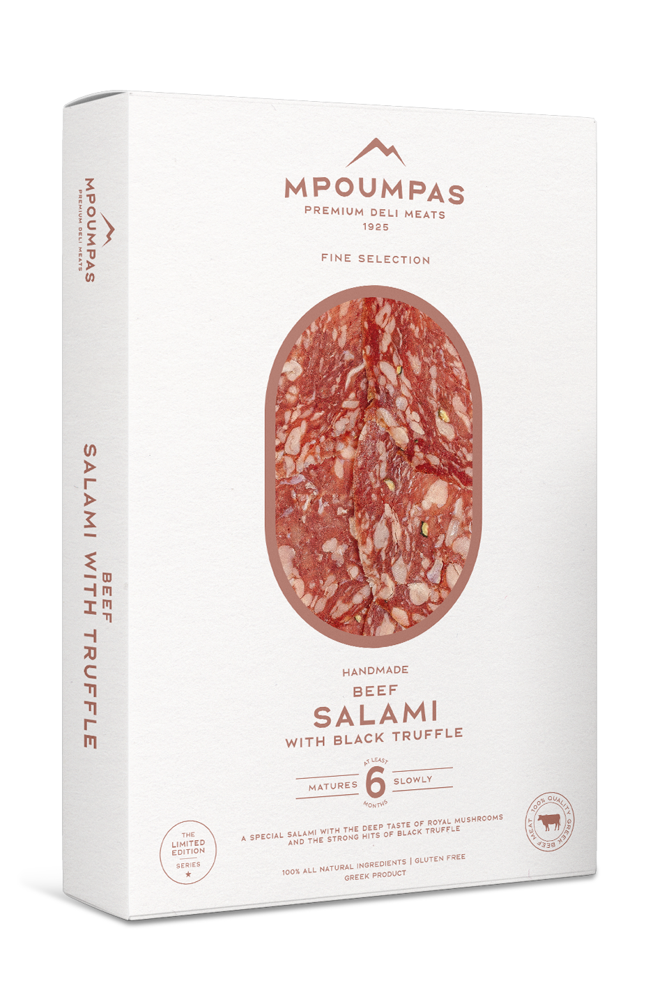 Ζήστε την απόλυτη γαστρονομική εμπειρία με το Χειροποίητο Μοσχαρίσιο Σαλάμι Μπούμπας με Μαύρη Τρούφα. Πρόκειται για ένα αριστούργημα της αλλαντοποιίας μας, όπου το εκλεκτό Ελληνικό μοσχάρι ελευθέρας βοσκής συναντά το “διαμάντι” της γης, τη μαύρη τρούφα. Η διαδικασία της αργής φυσικής ωρίμανσης για 6 ολόκληρους μήνες επιτρέπει στα υλικά να δέσουν αρμονικά, δημιουργώντας μια βελούδινη, σχεδόν κρεμώδη υφή που λιώνει στο στόμα.
