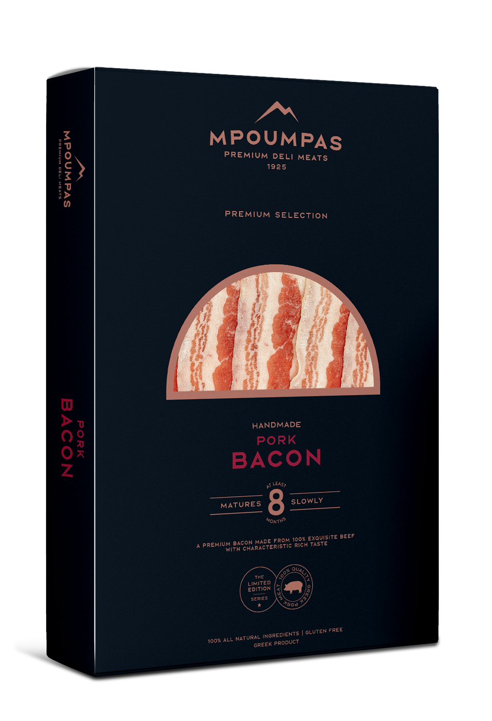 Το Χοιρινό Μπέικον αλλάζει όσα ξέρατε για το μπέικον. Δεν πρόκειται για ένα απλό βιομηχανικό προϊόν, αλλά για ένα αλλαντικό αργής ωρίμανσης (8 μήνες), φτιαγμένο αποκλειστικά από 97% Ελληνικό Μαύρο Χοίρο. Η μακρά παραμονή του στους θαλάμους ωρίμανσης, σε συνδυασμό με το φυσικό κάπνισμα σε ξύλο οξιάς, μεταμορφώνει το λίπος σε μια “κρέμα” νοστιμιάς που λιώνει στο στόμα.